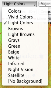 Backgrounds named with a single color are flat, and have no topographical detail. These are smaller and faster files, and are often better for printing with superimposed layers on a grayscale printer.