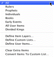 Note If you want to have specific names or events appears on the Item Layer, or add items not included in the Timeline database, be sure to define your Custom Lists and User Items first, then follow this procedure. |