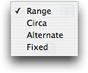 - Slightly uncertain dates are entered in the same way, but modified with Circa in the pop-up menus, e.g. ca. -450 to ca. -430. If Circa is selected, the Last date is ignored.