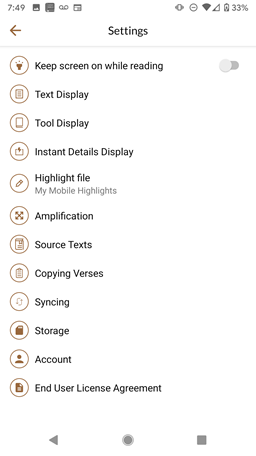 Note for Experienced Accordance Users: The Settings are similar to the Preferences set on the desktop version of Accordance.